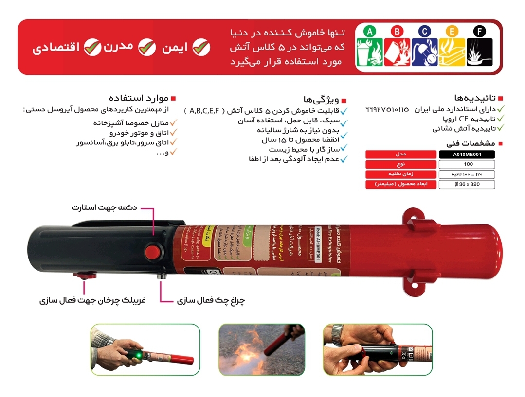 دارای مجوزات رسمی: استاندارد ملی ایران، تاییدیه سازمان آتشنشانی، CE اروپا